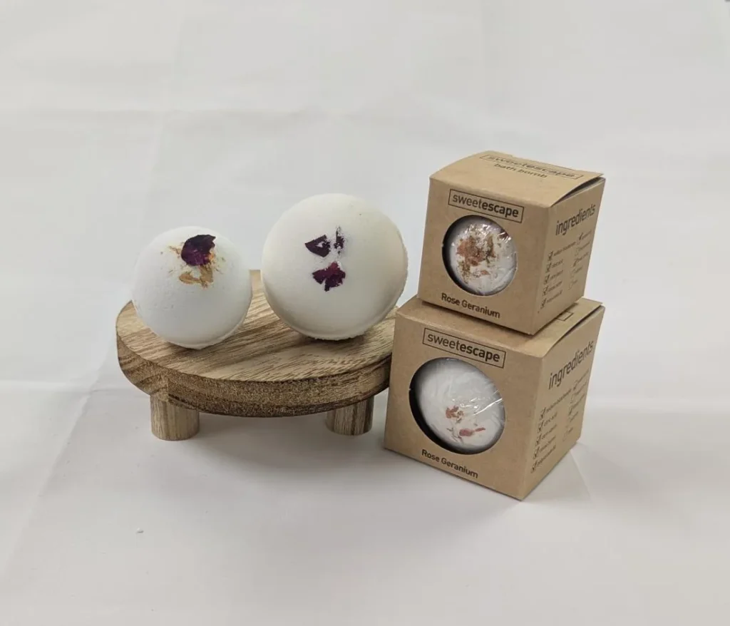 Be the first to review “Individual Mini Bath Bomb – Rose Geranium (with Petals)”
