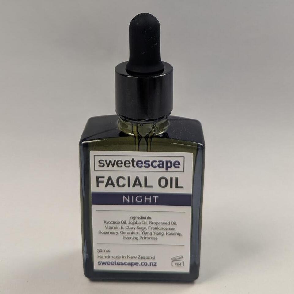 Night - ingredients: avocado oil, jojoba oil, grapeseed oil, vitamin e, essential oils - clary sage, frankincense, rosemary, geranium, ylang ylang, rosehip, evening primrose.