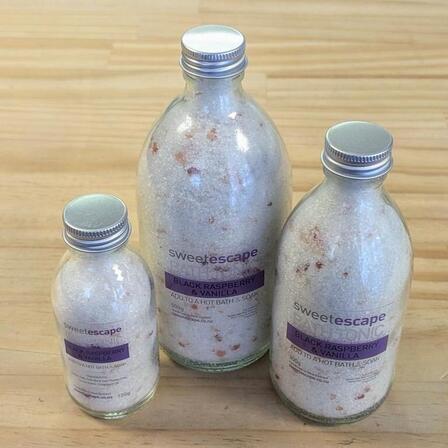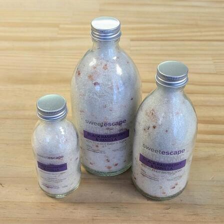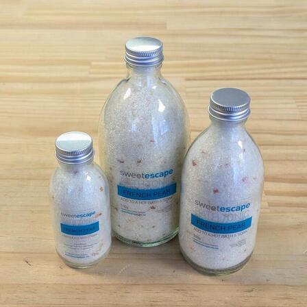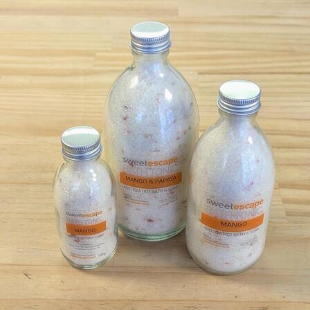 Love bath time with our gorgeous new range of bath tonics. The mineral containing salts soothe and balance your body... kaolin clay smooths and absorbs impurities while fragrant oils & nourishing cocoa butter carries you away to your very own 'Sweet Escape'.