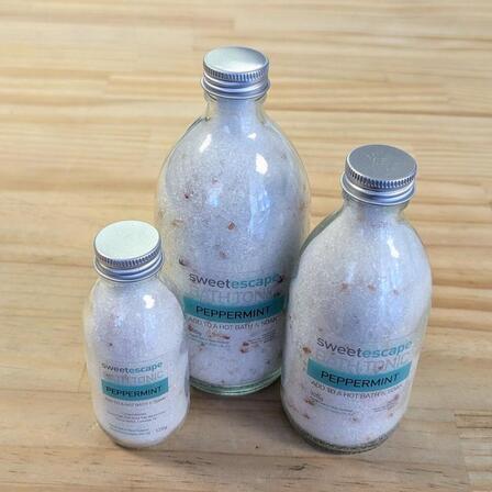Love bath time with our gorgeous new range of bath tonics. The mineral containing salts soothe and balance your body... kaolin clay smooths and absorbs impurities while pure essential oils & nourishing cocoa butter carries you away to your very own 'Sweet Escape'.