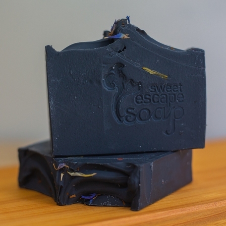 Ingredients: olive oil, water, lye, pure essential oil, activated charcoal, flower petals. No colours or artificial fragrances added.